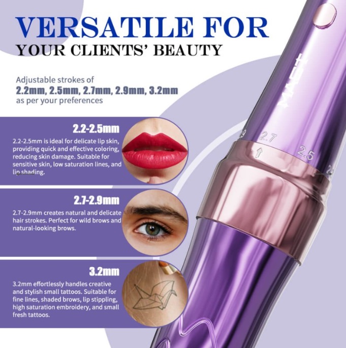 Trazos ajustables: longitudes de trazo variables (2,2/2,5/2,7/2,9/3,2 mm) para diversas necesidades de PMU,