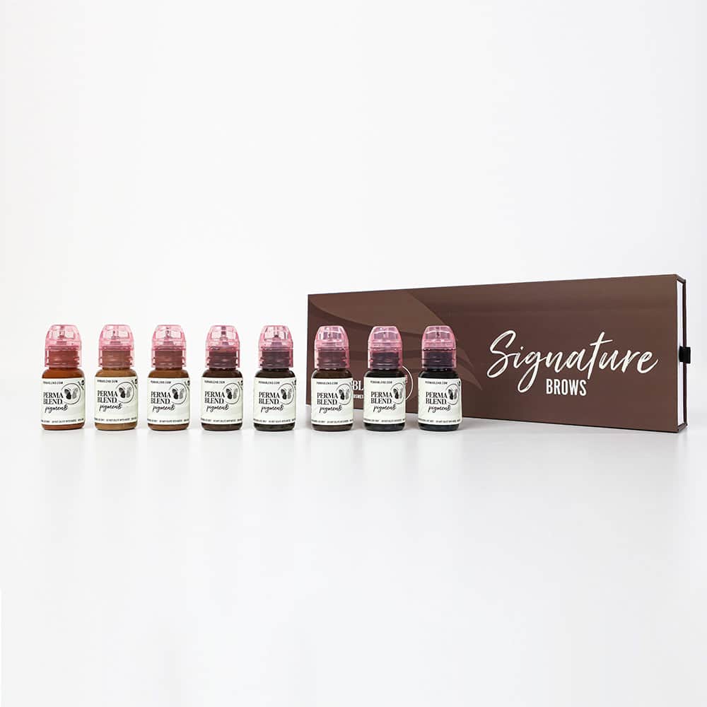 Nuestra nueva Serie Signature para Cejas presenta los pigmentos más vendidos desde el rubio más claro hasta el marrón más oscuro. Este conjunto también incluye nuestro nuevo modificador, Cobre Llamativo, (valor medio, cálido) para que puedas realzar la belleza natural de cualquier cliente.